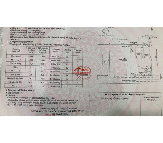 • Bán 6tr USD. Có xương 1800x2 = 3600m2. VP 330m2. Trong KCN nam tân uyên mở rộng. Đất 20.000m