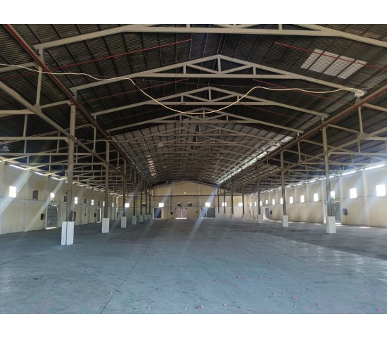 Cho thuê nhà xưởng DT đất 5.000m2 xưởng 3.000m2 VP 200m2 giá 3usd m2. Cọc 6 tháng. Pccc tự động. Giấy tờ đầy đủ. Khung vien riêng. Tiếp ngành nghề sạch không dễ cháy.
