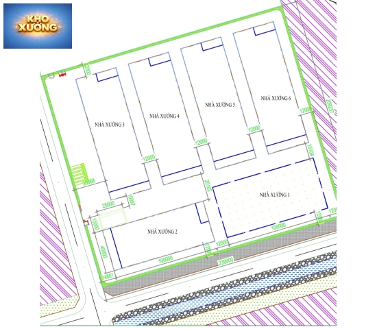- Nhà xưởng 3 & 4, 5 & 6: 40 x 120 = 4.800 mét vuông