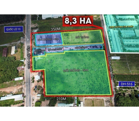 DT đất 8,3 mẫu giá 4,3tr /m2 đất 2 mặt tiền đường nhựa có xưởng 15.000 m đang cho thuê