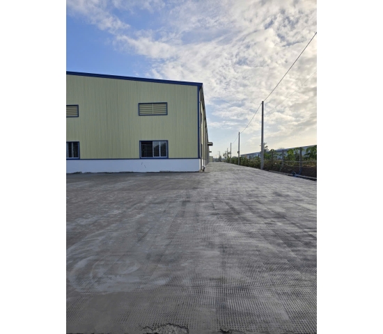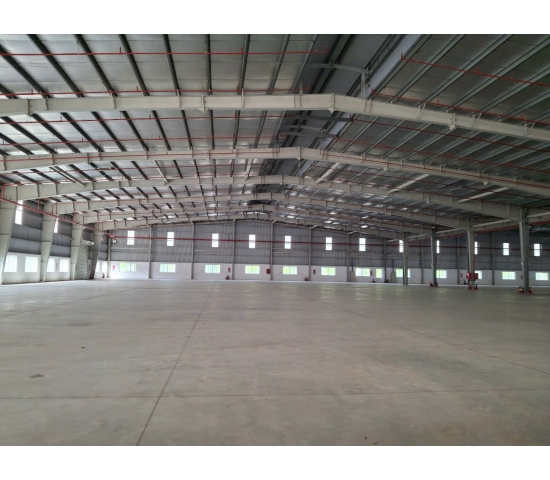 Diện Tích đất 5000m2 xưởng 3.700m2 giấy tờ đầy đủ. Xưởng mới. PCCC tự động. Điện 320kwa. Giá cho thuê 2,7 USD/ M2. Cọc 6 tháng