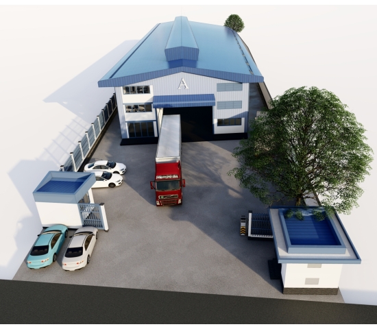 Diện tích khuôn viên : 4,600m2, nhà xưởng : 2,600m2. Văn phòng : 210m