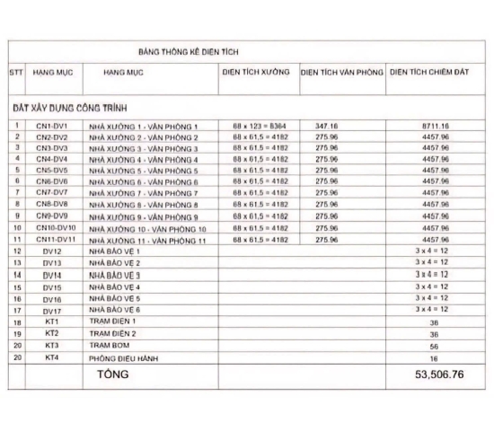 Gồm 6 xưởng mỗi xưởng : 8.364m2