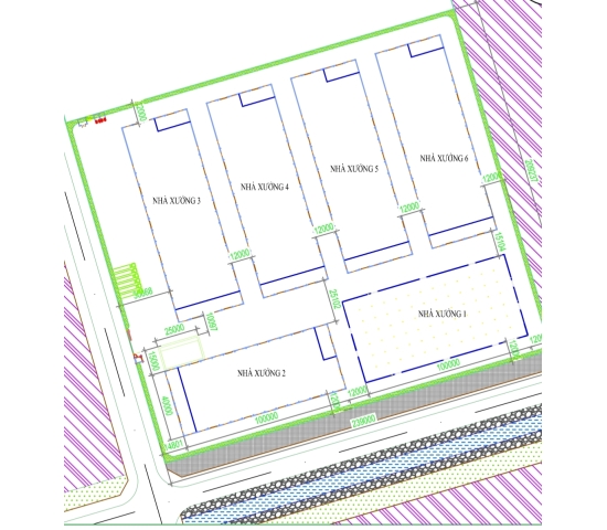 - Nhà xưởng 3 & 4, 5 & 6: 40 x 120 = 4.800 mét vuông