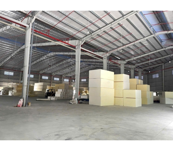 -Tổng diện tích 6.000m2, diện tích nhà xưởng 3.372 m2, văn phòng phòng ở trệt lầu 192m2