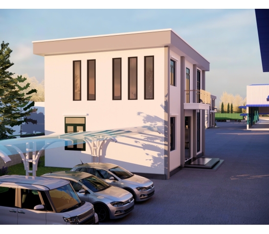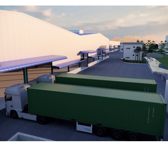 Đường xe container, có sân rộng